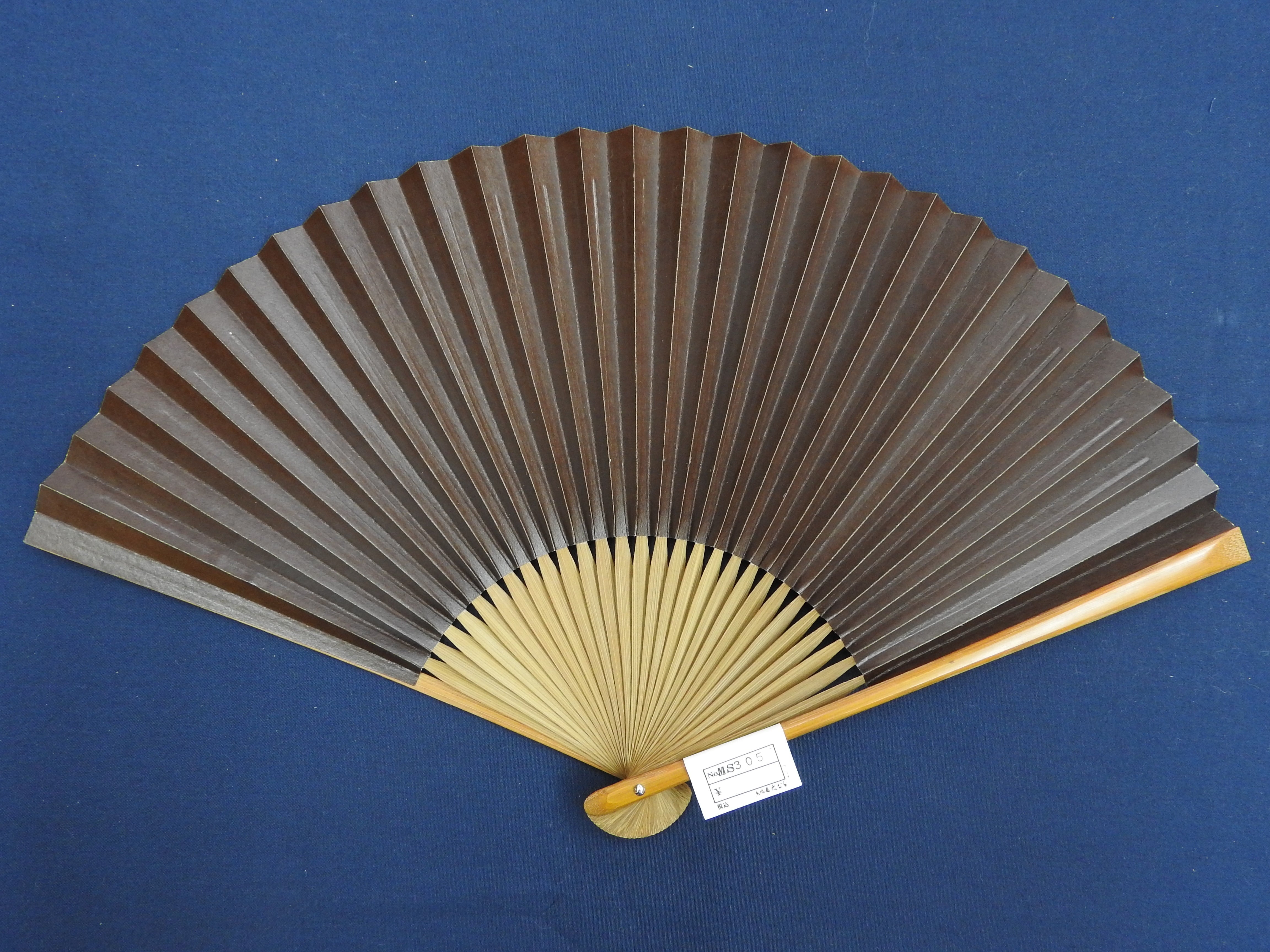 京風庵大むらのこのこげ茶色の扇は、シンプルながらも洗練されたデザインが魅力です。渋無地の美しさは、時代を超えて愛される日本の伝統色を感じさせ、持つ人に上品さを与えます。無地だからこそ、様々なシーンにマッチし、シンプルな中にも深みがあります。